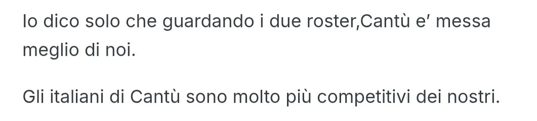 sertar Posted November 17, 2025 Posted November 17, 2025 4 minuti fa, Marcus keene dice: Chi lo avrà mai scritto questo commento............... E vabbè non ti basta aver vinto, vuoi stravincere? Cantù se vorrà salvarsi dovrà ripensare al proprio roster, e noi sperare che JJ Chandler sia una voce infondata. Perché giustifico l'errore Moody, un po' meno Freeman, ma a Chandler visto in A2 non capisco come si possa anche solo pensarci. 1